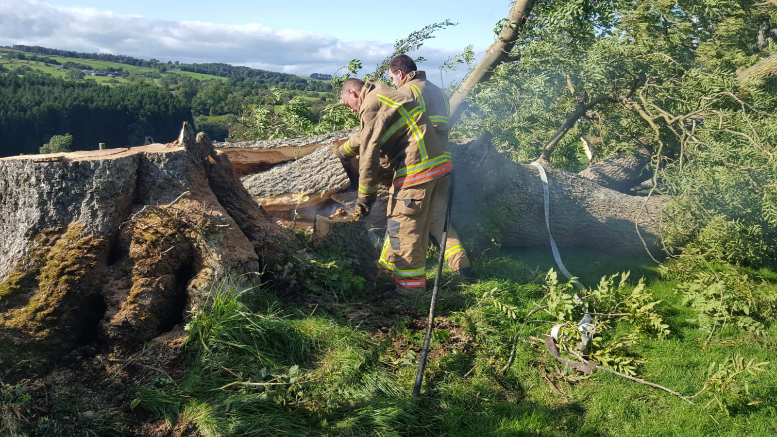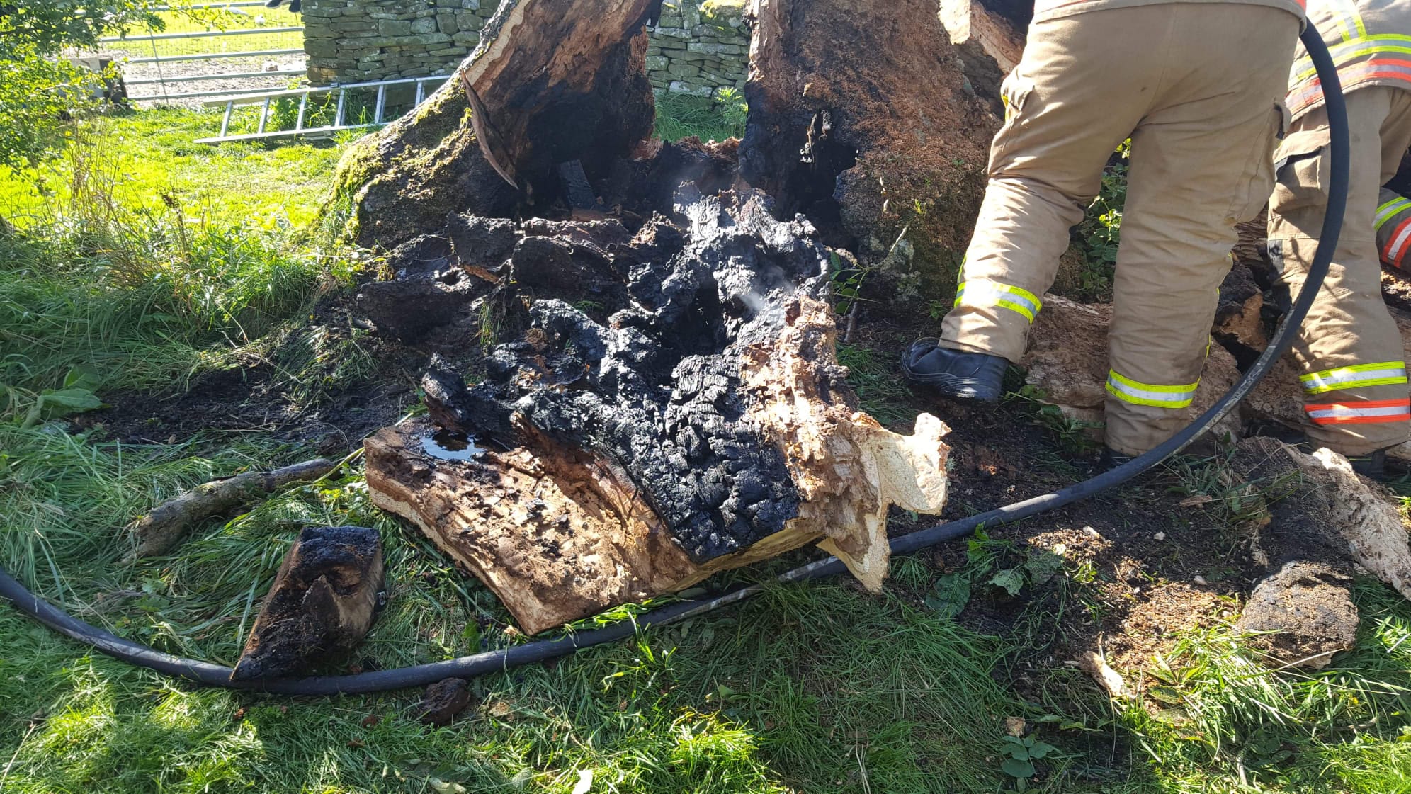 The gallery below shows examples of some of our emergency work. It’s not the first time we’ve been called to help out with the fire brigade. A very large tree had caught fire and we were asked to get it on the ground as quickly as possible as it was at risk of falling on mains power in one direction and a house in the other direction.